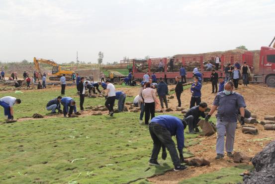 暮春的袁店南矿山矿区生机盎然,5月11日,来自大地集团党委各支部的50余名党员代表带领400余名职工在袁店南矿山摆开了战场,在这里进行种植草坪活动。 只见大家分工协作,认真地完成每一道工序。有的在平整土地、有的在铺种草皮、有的在浇水,干的热火朝天。在大家的共同努力下,当天袁店南矿山恢复治理区内15000余平方米的草坪铺设铺种完成,为矿山披上了绿衣。 参加活动的党员代表关会昌表示,种植草坪活动既充分发挥了党员的模范带头作用,同时也为绿色矿山建设实实在在出了一份力,感觉非常有意义。 |
