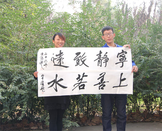 初冬时节,寒意袭人,大地公司中控一楼会议室却暖意融融,满室墨香。让书法走进企业,让艺术助力文化,12月1日,西藏书法家协会副主席樊学礼一行应邀来到大地公司,现场传授书法创作技巧与心得,并泼墨挥毫,创作风格各异的书法作品,并将这些作品赠送给企业,赠送给员工。 一幅幅笔酣墨饱,苍劲有力的书法作品,令广大员工赏心悦目。“能一睹大书法家风采,真让人高兴,希望公司今后多开展类似的活动。”一位员工拿着一幅“淡泊以明志,宁静以致远”的作品爱不释手。 |