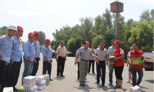 7月18日上午,县总工会主席郭鹏飞一行人冒着酷暑,为集团送来了清凉,受到集团职工热烈欢迎。