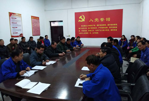 2月2日下午,大地公司党支部在西中控楼二楼党员活动室召开支部党员大会,大地公司全体党员40多人参加了会议。会议由党支部书记赵中要同志主持。 会议首先由组织委员张怀永同志带领大家重温了入党誓词,使每位党员再次接受心灵的洗礼,进一步增强了党员的神圣感、使命感和责任感。接着,支部书记赵中要同志对党员的思想状况进行了全面分析。最后,大家结合自身工作实际,就如何做好一个合格党员进行了深入探讨,大家踊跃发言,会场气氛热烈,纷纷表示,要以实际行动影响和带动身边人,时时处处起到模范带头作用,充分发挥一个党员一面旗帜的作用。 会议现场 会议由支部书记赵中要同志主持 老党员崔永志同志发言