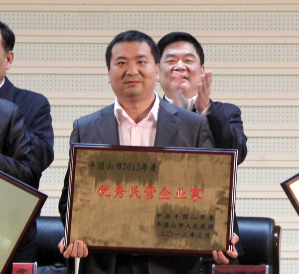 2013年3月27日上午,全市县域经济暨非公有制经济表彰大会在市行政服务综合楼会议室召开。河南省大地水泥集团被授予平顶山市2012年度“优秀民营企业”;集团董事长张彪荣获优秀民营企业家。 2012年,在建材市场形势严峻的情况下,大地集团转变思路,强化管理,节能降耗,提档升级,实现纳税达1.4亿元,连续两年成为宝丰县纳税超亿元企业,连续五年蝉联宝丰县纳税排行榜第一名,为县域经济社会发展做出了突出贡献。成为全省建材工业30强的龙头企业。 集团董事长张彪荣获优秀民营企业家 |