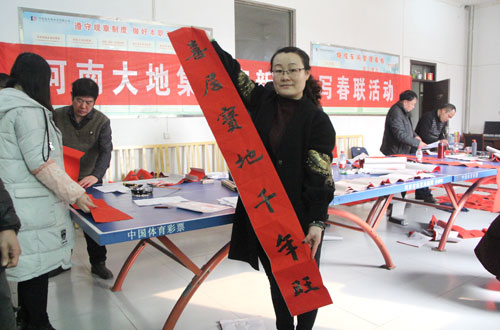 1月24日,在新春佳节来临之际,开云体(中国)官方网站邀请部分国家级、省级书法家协会会员到集团义写春联,为广大员工送去新春的祝福。 红春联,红笑脸。在义写春联现场,应广大员工所需,书法家们凝神静气,挥毫泼墨,挥就一幅幅笔酣墨饱、寓意深刻的新春佳联,大红的福字,吉祥的喜字,构成一道独特的年俗文化风景线。活动持续三个多小时,300多幅春联被大家一抢而空。 “还是手写的春联最有年味儿。”一幅幅不同风格的春联让闻讯而来的广大员工喜笑颜开,赞口不绝。 |