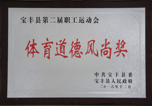 首页 >> 走进大地 >>资质荣誉 >> 宝丰县第二届职工运动会体育道德风尚奖