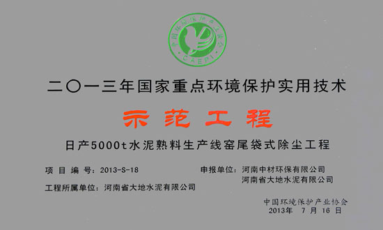 首页 >> 走进大地 >>资质荣誉 >> 2013年国家重点环境保护实用技术
