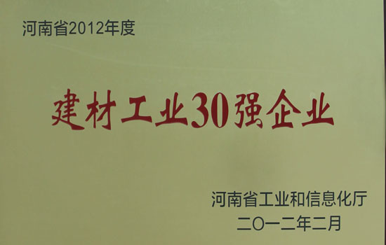 首页 >> 走进大地 >>资质荣誉 >> 河南省2012年度建材工业30强企业