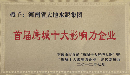 首页 >> 走进大地 >>资质荣誉 >> 首届鹰城十大影响力企业